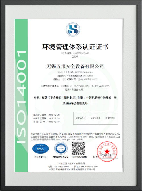 環境管理體系認證證書